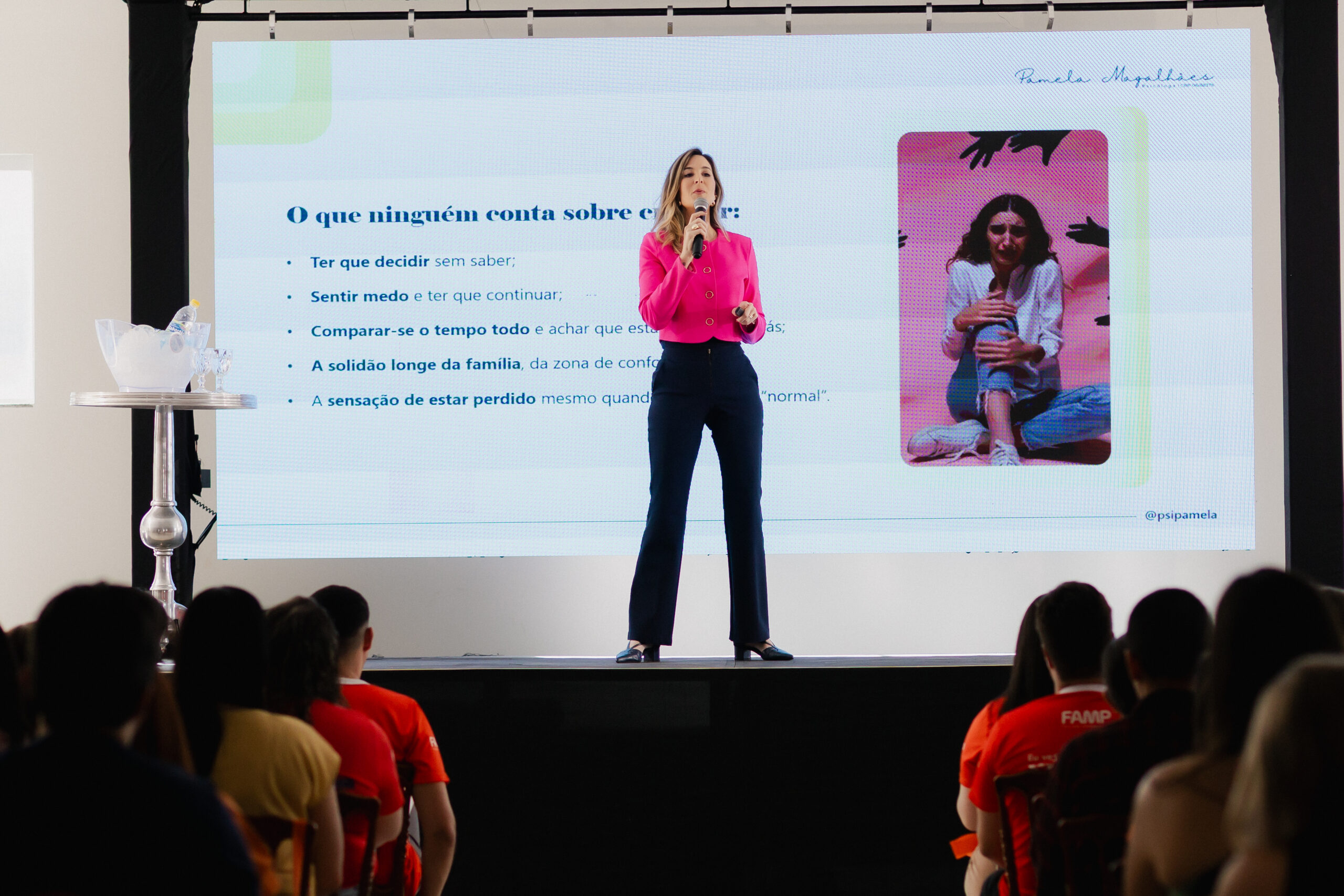 No dia 23 de agosto de 2025, a Faculdade FAMP realizou sua tradicional Cerimônia de Acolhimento, um momento especial voltado a receber e integrar alunos e colaboradores no início do semestre letivo. A programação contou com a palestra da psicóloga Pamela Magalhães, intitulada “Abraço Invisível: Quando a dor precisa de espaço”, que trouxe importantes reflexões sobre saúde mental, acolhimento e os desafios enfrentados no percurso acadêmico e pessoal.